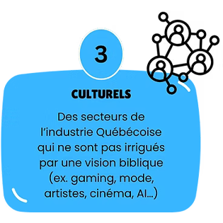 - L’industrie du cinéma québécois, où très peu de croyants visibles portent un témoignage évangélique = désert culturel.